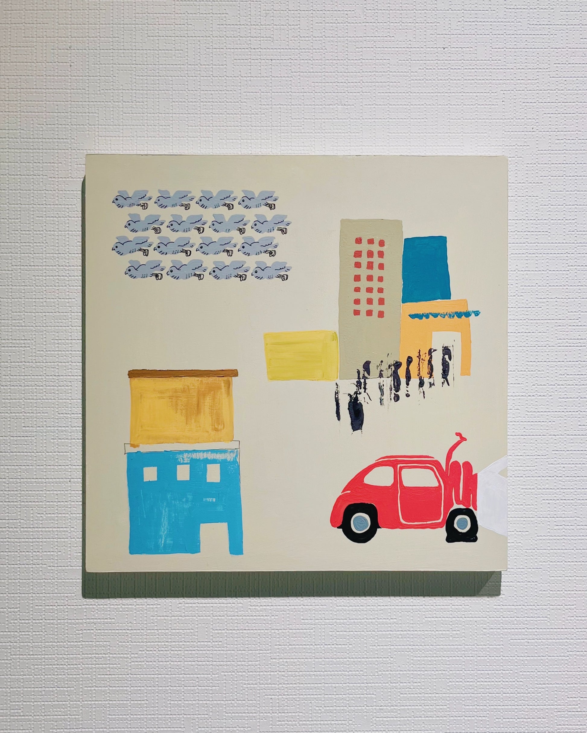 公園の石垣に衝突する車、鳩のスニーカー窃盗団、大慌ての靴屋と人の列。